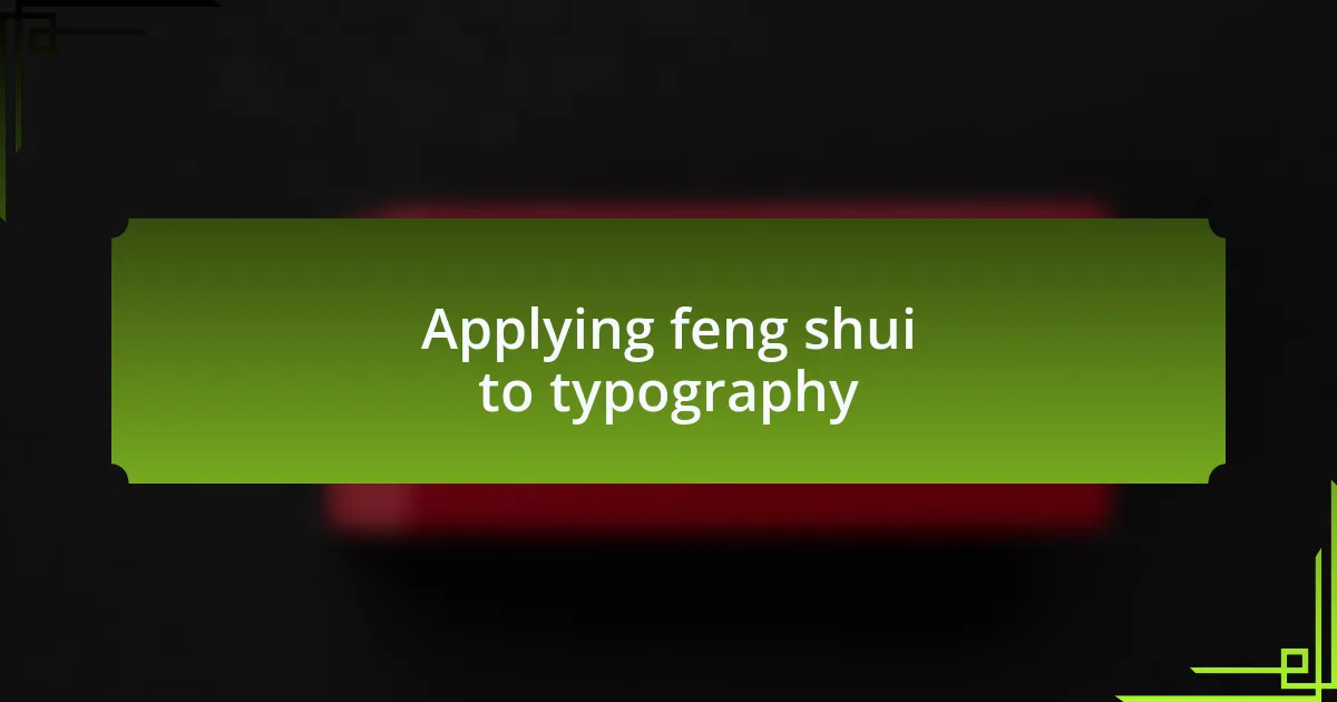 When I think about applying feng shui to typography, one key aspect that comes to mind is the alignment and placement of type. For instance, I once worked on a project where I intentionally centered the headline to draw attention, believing it facilitated better energy flow, or chi. The result? It not only captured the reader’s focus but also created a sense of balance that felt just right.