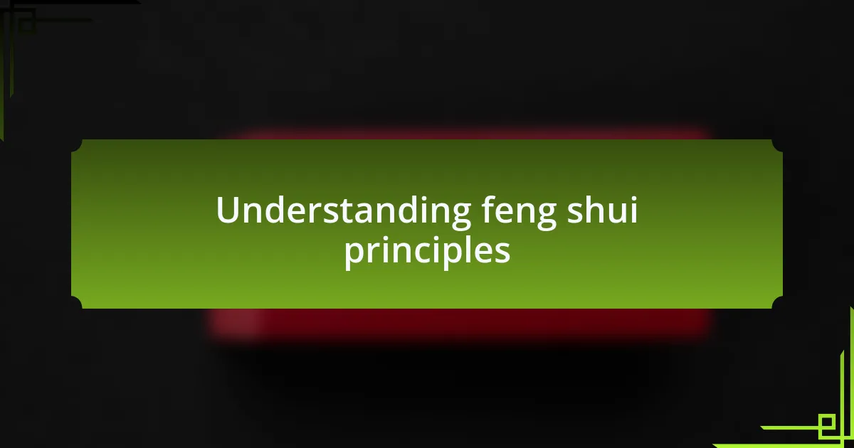 One of the key principles is the concept of “chi,” or energy flow. Imagine your home as a vessel for this energy. I once rearranged my workspace according to feng shui guidelines, and the shift in my productivity was remarkable. By ensuring that my desk faced the door and decluttering the surrounding space, I felt more focused and inspired. Isn’t it fascinating how small adjustments can have such a profound impact?