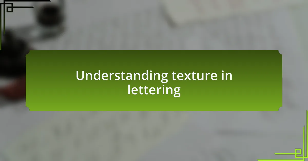 Texture in lettering adds depth and personality to the written word, making it more than just a vessel for information. I remember the first time I incorporated a rough, gritty texture into a logo design; it instantly conveyed a sense of rugged authenticity. The choice of texture can transform the character of the text, imbuing it with feelings such as warmth, sophistication, or even playfulness.