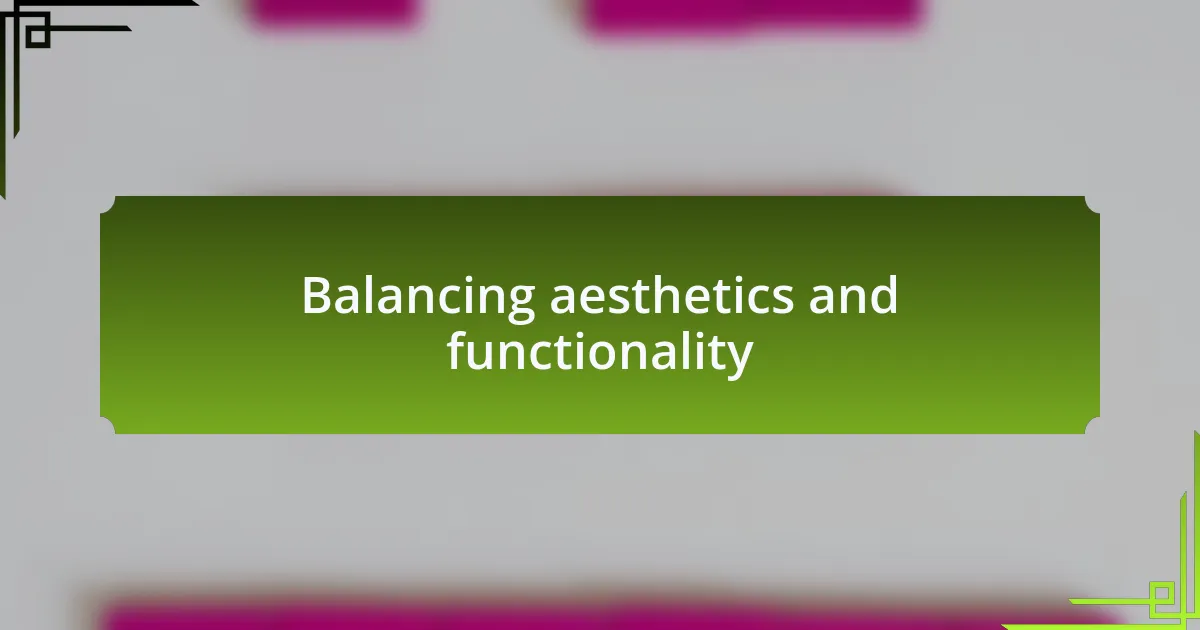 Finding the right balance between aesthetics and functionality can be challenging but rewarding. I recall a project where I was torn between using a visually stunning font and a more straightforward option. Ultimately, I chose a clean, modern typeface for a tech company, knowing that while the more elegant font would catch the eye, it would compromise the user experience. Have you ever sacrificed readability for beauty?