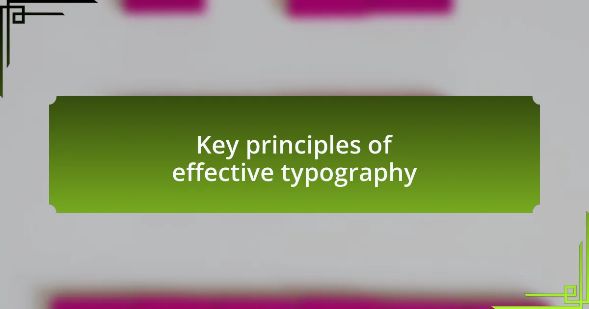 When I consider the key principles of effective typography, I often think about hierarchy. Establishing a clear visual hierarchy helps direct the reader’s attention exactly where you want it. For example, in one project, I played with font sizes and weights to lead users through a blog post’s key points—it made complex information digestible and inviting.