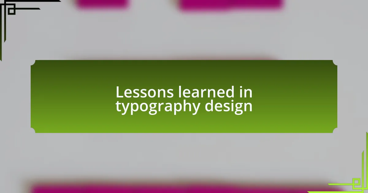 One pivotal lesson I’ve encountered is the importance of hierarchy in typography. While working on a magazine layout, I struggled with making the headlines pop without overwhelming the reader. I experimented with different sizes, weights, and colors and learned that a subtle shift in font weight can guide the eye effectively. It’s fascinating how a small change can lead to a significant difference in visual flow—how do you approach the hierarchy in your designs?