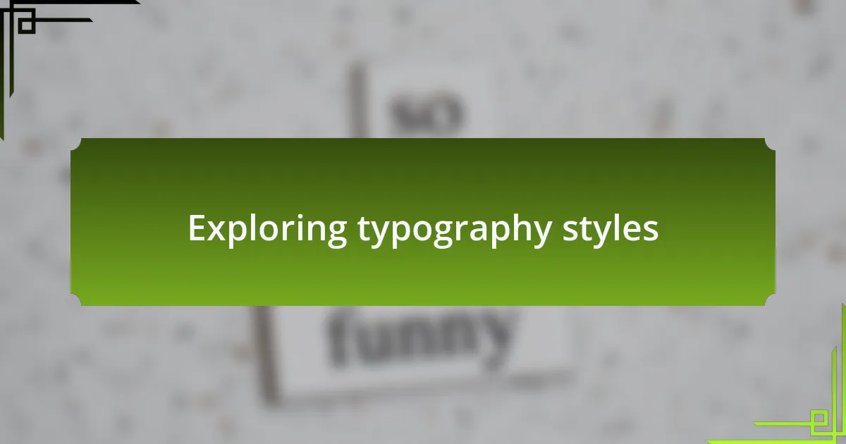 Exploring different typography styles opens up a world of creativity and expression in design. I remember a project where I delved into various serif typefaces for a luxury brand. Each serif variant offered distinct nuances, and I found myself captivated by how a subtle curve or sharp edge could influence the brand’s elegance and sophistication. Have you ever played around with fonts and felt an instant shift in mood or tone?