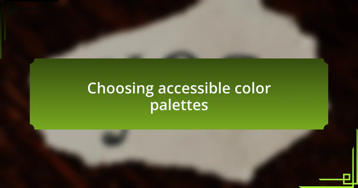 When selecting an accessible color palette, it’s crucial to consider the contrast ratio between text and background. I remember a particular instance where I chose a muted blue for the text against a white background, and while it looked aesthetically pleasing, it made reading difficult for some users. This experience taught me that balancing visual appeal with functionality is essential—after all, what good is beauty if it isn’t readable?