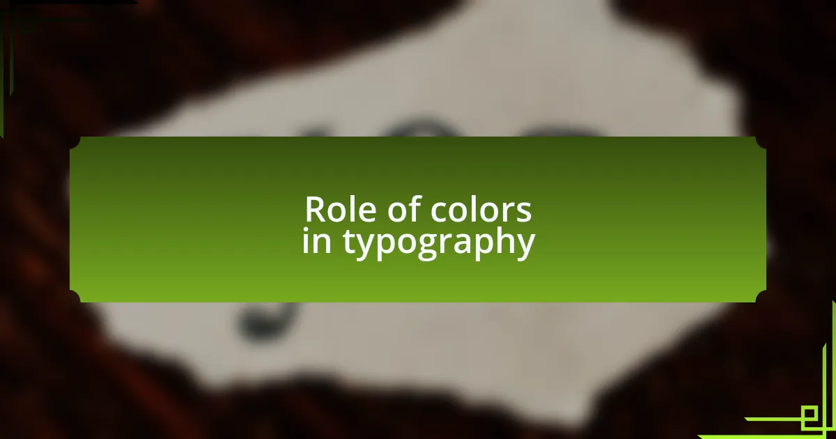 The choice of colors in typography can profoundly influence not just readability but also the emotional tone of the content. I recall a project where I experimented with warm versus cool color schemes for the same text, finding that the warmer tones created a more inviting atmosphere, while cooler ones felt stark and distant. Isn’t it fascinating how colors can change our perception?