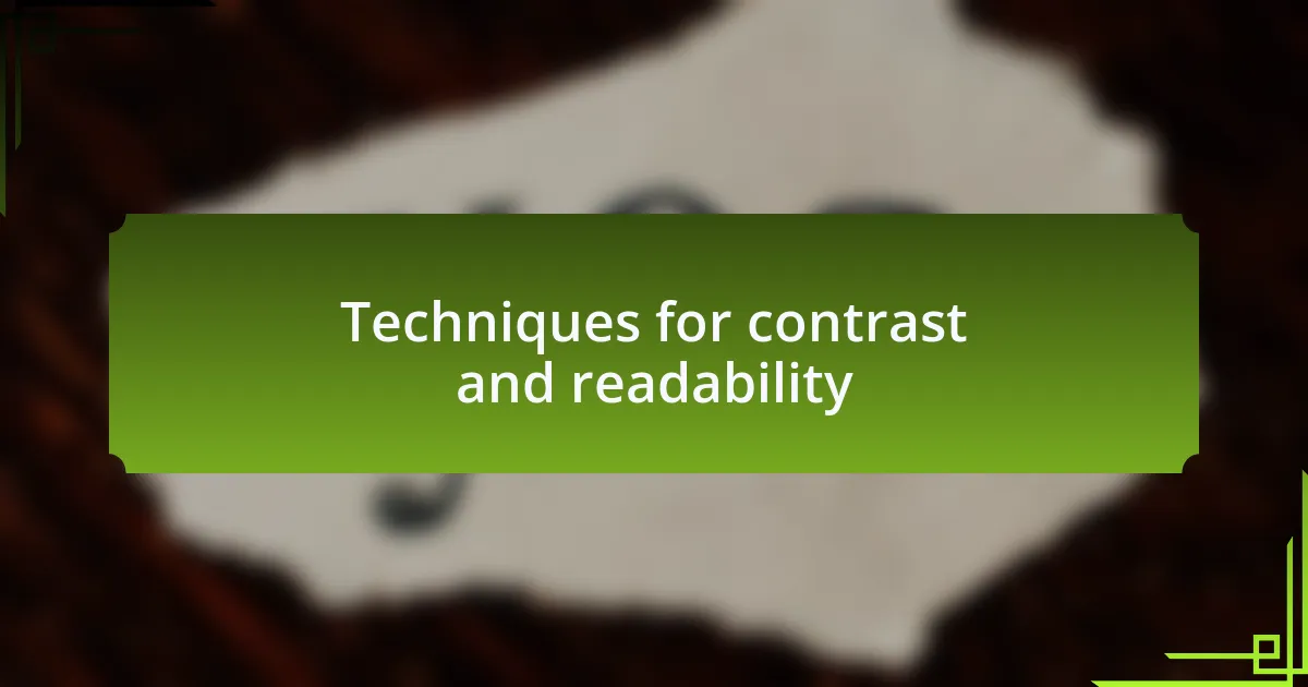 One effective technique I’ve found for enhancing contrast and readability is leveraging typographic weight. During a recent project, I experimented with bolding headers against lighter text. The moment I made this shift, I noticed a dramatic increase in user engagement; it became so much easier for visitors to scan the information. Have you ever considered how much a simple tweak like this can transform an entire page?