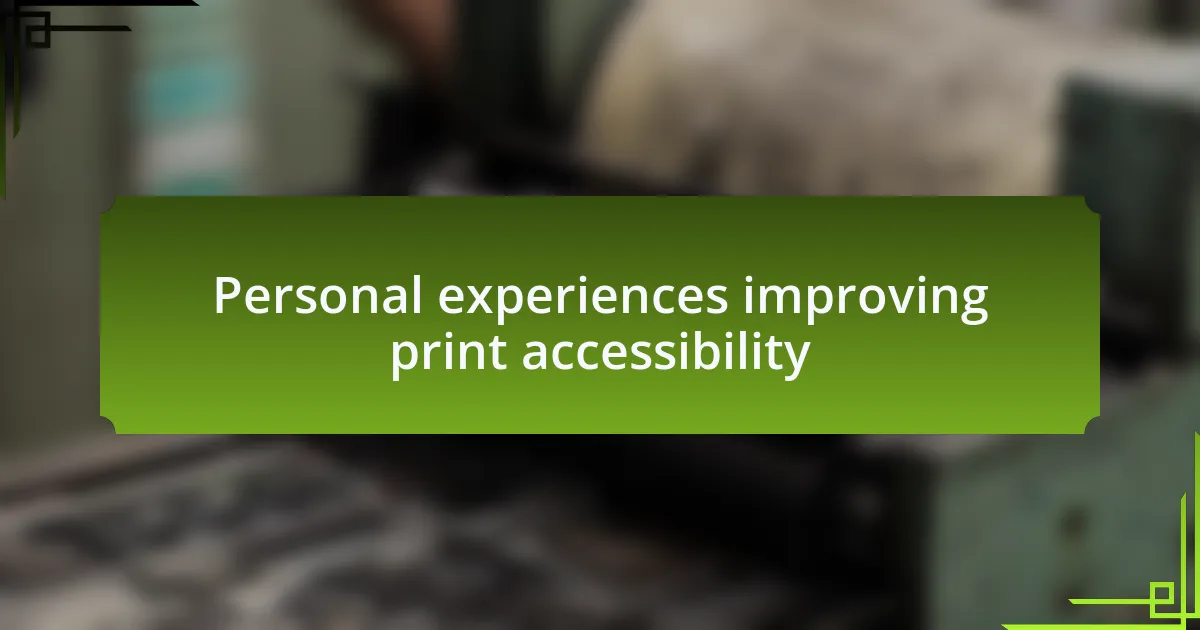 Accessibility in design is not just a checkbox; it’s a fundamental responsibility we have as designers. I recall a time when I participated in a workshop focused on inclusive design strategies. Listening to individuals share their experiences of navigating poorly designed materials opened my eyes to the barriers faced by many. It made me realize that every design decision I make has the potential to include or exclude a vast audience.