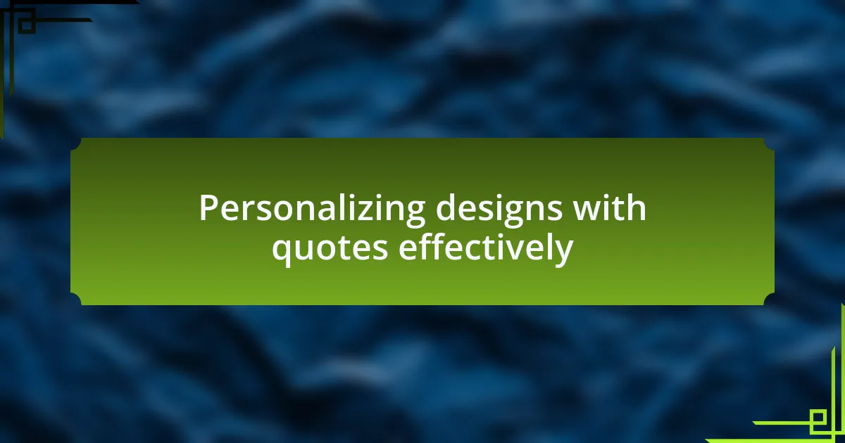Incorporating quotes into design can truly personalize the experience. I remember a project where I wanted to capture the essence of a brand’s mission. By carefully selecting an inspiring quote from the founder, I not only conveyed their vision but also connected emotionally with the audience. This small touch transformed the visual identity, making it resonate on a deeper level. Have you ever felt a jolt of inspiration simply from reading a well-placed quote?