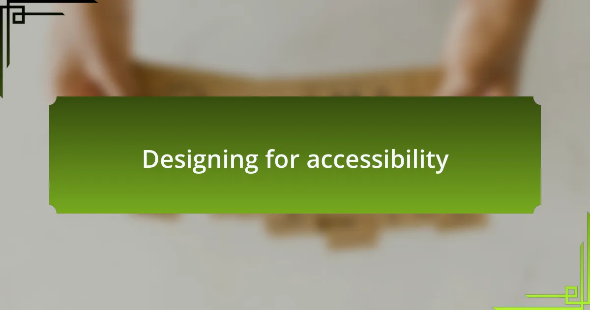 Designing for accessibility goes beyond mere aesthetics; it’s about truly connecting with people. I remember a time when I was working on a project for a nonprofit organization focused on supporting individuals with visual impairments. This experience opened my eyes to the importance of contrast. I learned that selecting a color palette with high contrast not only makes the text more readable for everyone but also ensures inclusivity. I often wonder, how many designs fail to reach their potential simply because of neglecting this crucial element?