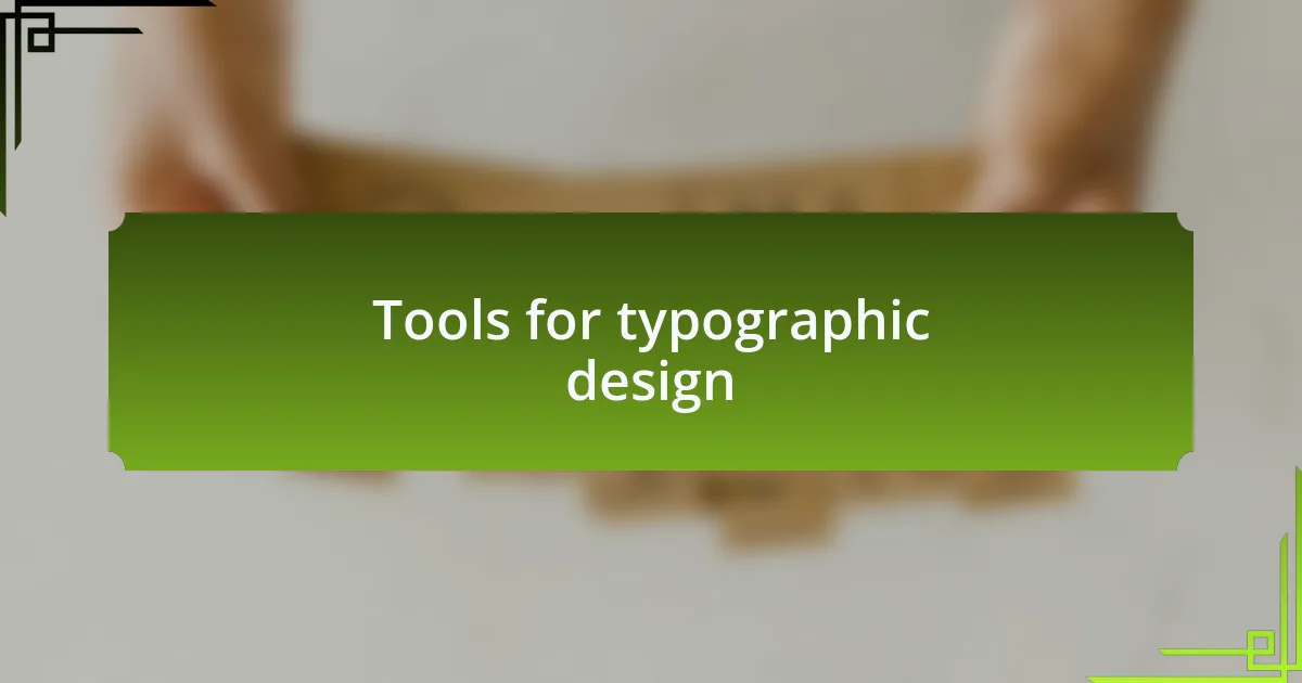 When it comes to tools for typographic design, I’ve found that software like Adobe Illustrator and InDesign can be game changers. These platforms offer robust capabilities for customizing typography, allowing designers to adjust everything from kerning to tracking with precision. I remember my first time using Illustrator; the ability to play with letter spacing completely transformed a project I was working on, making the text not only more visually appealing but also easier to read. Have you ever experienced a moment where a tool elevated your design in an unexpected way?