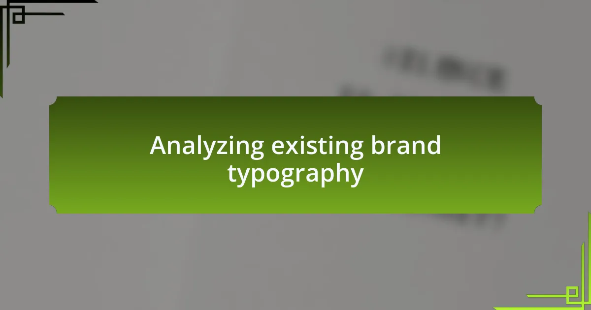 When analyzing existing brand typography, I often ask myself what emotions the current fonts evoke. I remember working on a project for a local bakery where the script font initially gave off a whimsical, homey vibe. Yet, as I delved deeper, I realized it didn’t convey professionalism; our target audience longed for a blend of comfort that also conveyed quality. This revealed a critical aspect of typography: it should not only reflect the brand’s identity but also align with its goals.