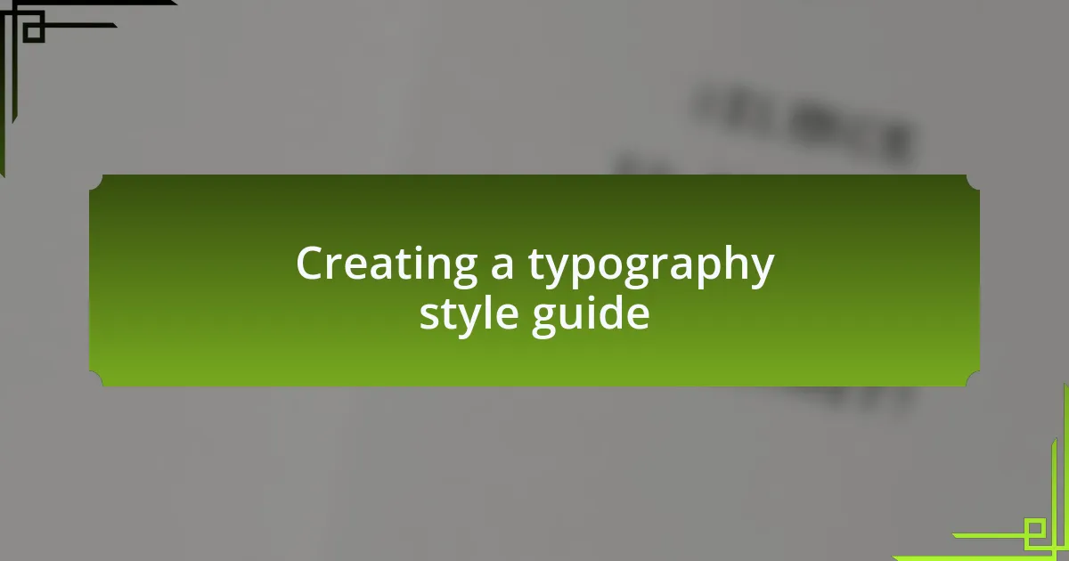 Creating a typography style guide is like building a roadmap for your brand’s visual voice. I recall designing one for a tech startup, where we defined not just the fonts but also the emotions tied to them. We selected a modern sans-serif for headlines to convey innovation, while a clean serif was chosen for body text to balance professionalism with readability. Have you ever wondered how a simple change in font can shift the overall feel of a brand? It’s fascinating to see how crucial these decisions are.