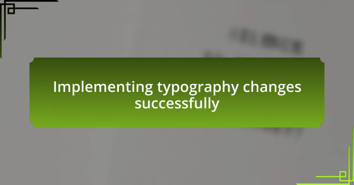 Implementing typography changes successfully requires careful planning and strategic execution. I once worked with a local boutique that wanted to revamp its online presence. After analyzing the current typography, we identified the need for a bolder font that reflected their vibrant aesthetic. I remember the moment we unveiled the changes; the boutique owner was thrilled, observing how the new fonts effectively encapsulated the brand’s personality. It’s moments like these that remind me just how impactful typography can be.