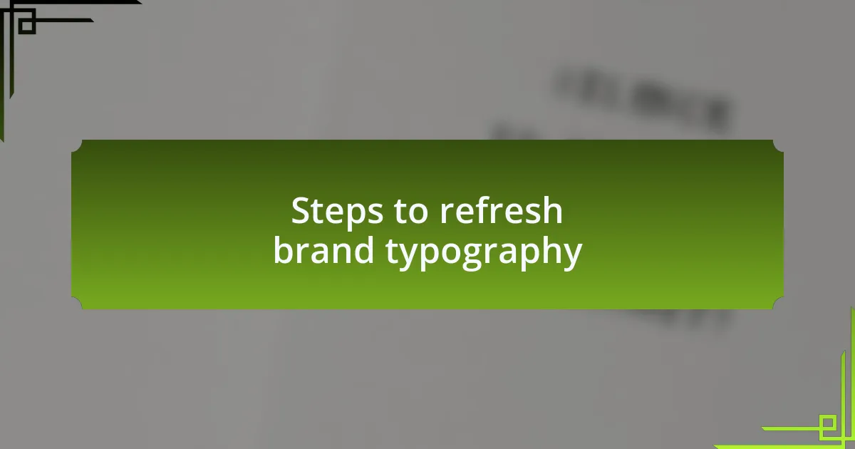 When I set out to refresh brand typography, the first step I take is to analyze the existing font choices. I recall a rebranding project where the fonts felt outdated, almost like they belonged to a different era. Understanding that typography evolves, I realized it was essential to assess what resonates with the current audience while remaining true to the brand’s voice.