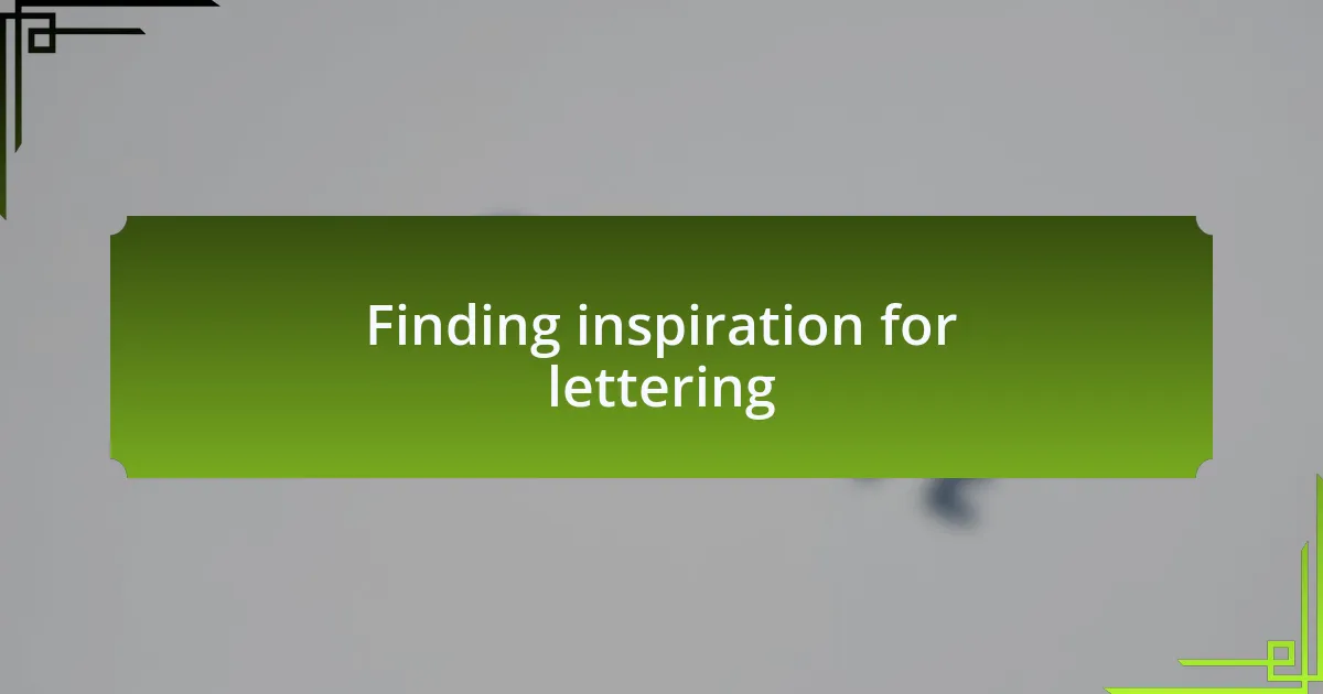 Finding inspiration for lettering often starts with opening my eyes to the world around me. A simple walk in the neighborhood can reveal striking typography on storefronts or intriguing street art. Have you ever stopped to take a photo of a sign that caught your eye? I do this all the time; it reminds me that inspiration is everywhere, waiting to be discovered.
