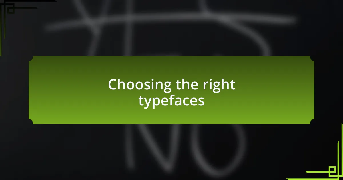 Choosing the right typefaces is crucial for conveying the intended message and emotional impact of a design. I remember selecting a handwritten font for a personal blog project, aiming to create an intimate and friendly atmosphere. It worked beautifully, evoking a sense of authenticity that connected deeply with my readers. Doesn’t it amaze you how a simple decision can transform the entire feel of your content?