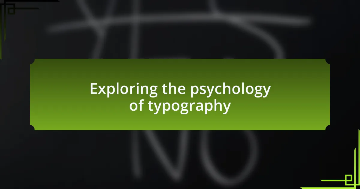 When I first delved into the psychology behind typography, I discovered how different typefaces can influence perception and behavior. For instance, I experimented with a bold display font on a promotional poster, which unexpectedly ignited a sense of urgency and excitement for an upcoming sale. Have you ever thought about how font choices can create such distinct emotional responses in just a glance?