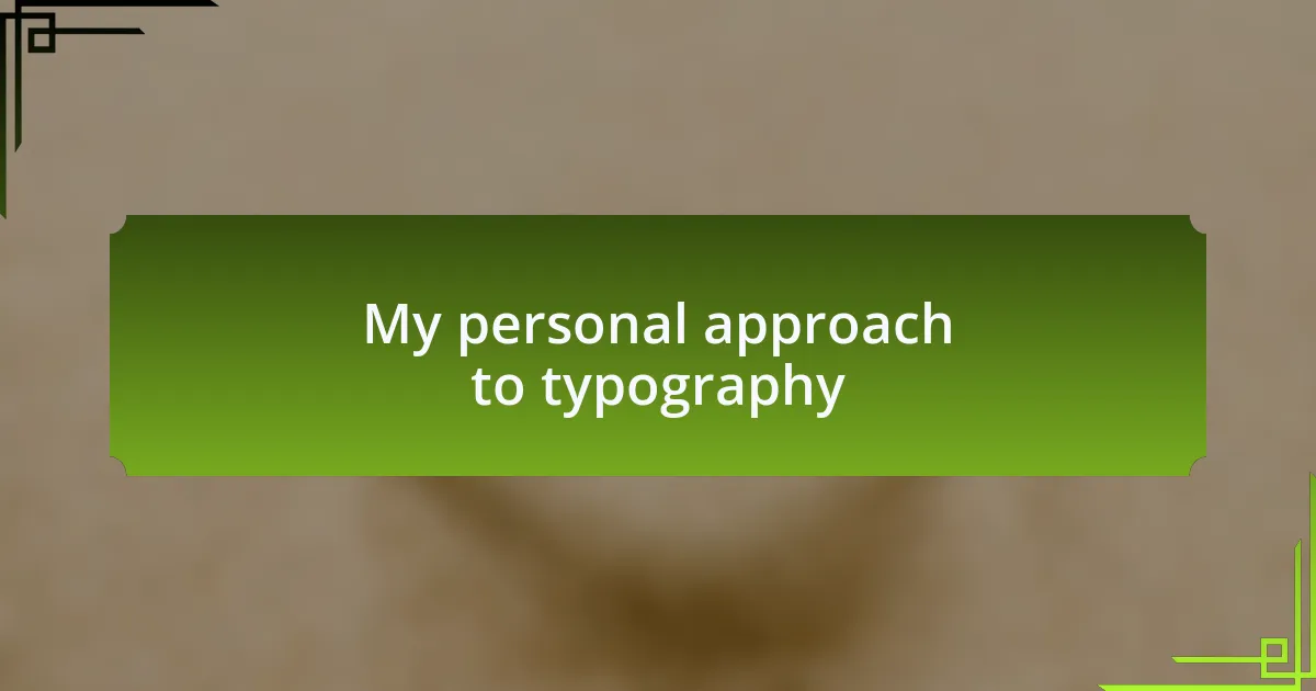 My personal approach to typography often begins with storytelling. I vividly recall a project where I designed an interactive digital magazine. The typography transformed the content; I selected a playful serif font that matched the theme of creativity and innovation. It was fascinating to see how the right typeface could evoke a specific mood, guiding the reader through the narrative. Can you imagine how the subtle nuances of typography can shape the emotions attached to a story?