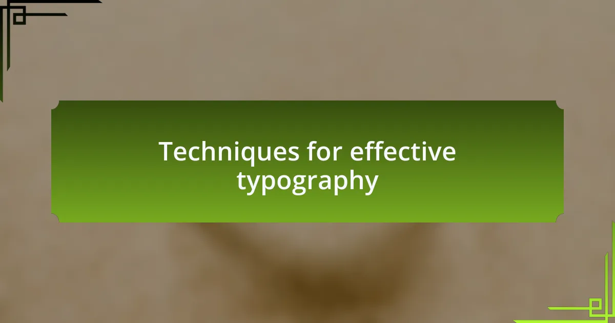 Using contrast effectively is one of my go-to techniques in typography. For example, during a recent project for a non-profit organization, I experimented with varying font weights and sizes to highlight key messages. By making the call-to-action bold and larger, I noticed that it drew in more attention and led to increased engagement. Have you ever noticed how creating visual hierarchy can guide a reader’s eye and enhance understanding?