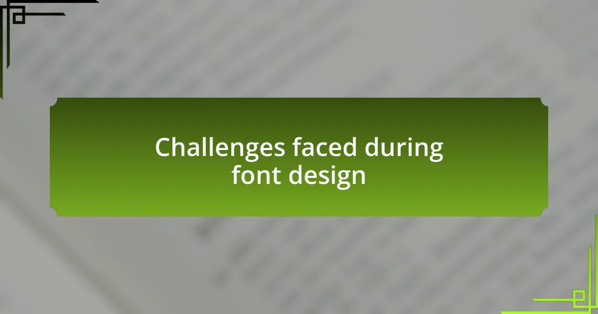 One major challenge I often encounter during font design is maintaining consistency across different characters. In one of my previous projects, I created a typeface inspired by the curves of nature. While the lowercase letters flowed beautifully, I found that the uppercase characters felt out of place. It was frustrating to realize that even a slight variation in style could disrupt the entire typeface. Do you ever find it difficult to balance creativity with uniformity? I know I do, and it’s a delicate dance.