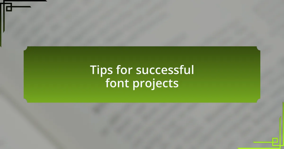 Another tip that has served me well is to test your font in real-world scenarios as early as possible. In one case, I initially designed a font that looked stunning on my screen, but when I integrated it into a website, the readability dropped significantly. While it was disheartening to see how my vision faltered, it reinforced the importance of practicality. Have you integrated a font only to realize it didn’t hold up in the wild? Trust me, early testing makes all the difference.