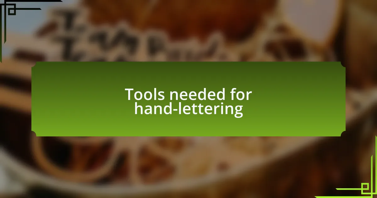 When it comes to hand-lettering, having the right tools can make all the difference. I remember my first set of tools, which consisted of a basic sketching pencil, some fine-tipped pens, and a few different markers. It felt like I was embarking on a new adventure, each tool representing endless possibilities for creativity. What I’ve learned is that your toolset doesn’t need to be expansive; rather, a few high-quality items can serve as a solid foundation.