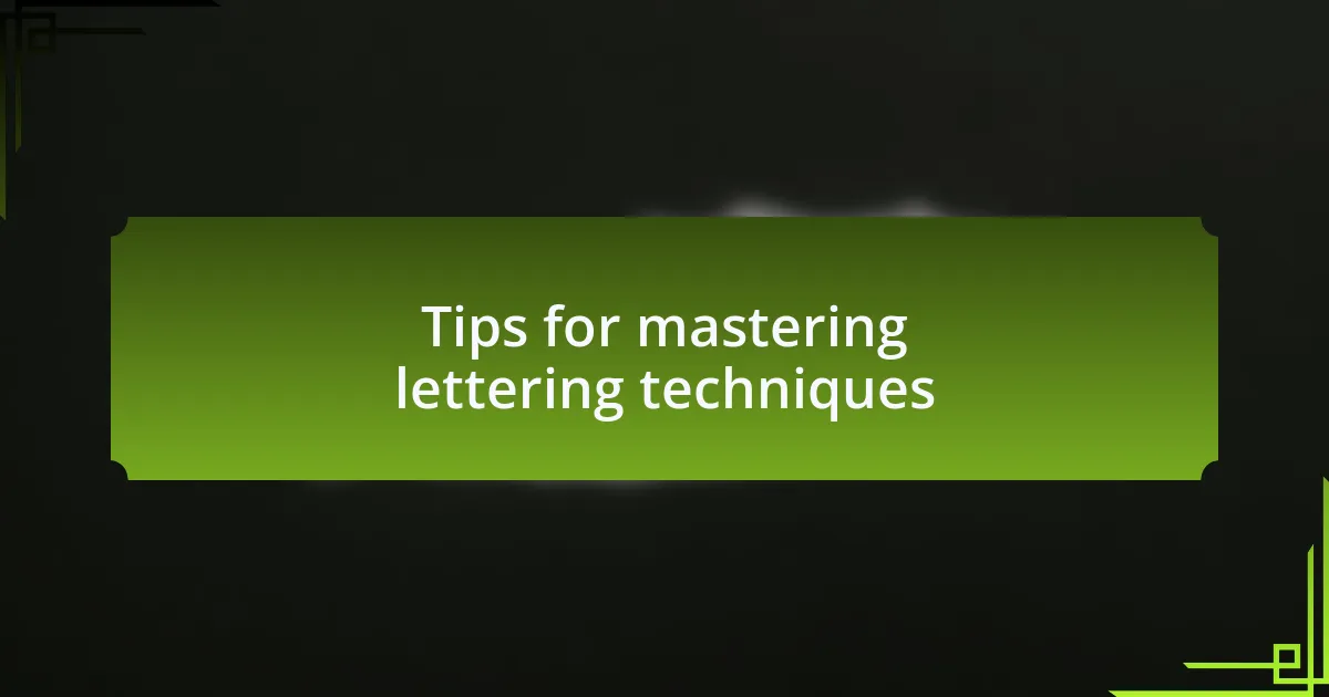 When practicing lettering techniques, consistency is key. I remember my first attempts at brush lettering, where I struggled to maintain even pressure on the brush. It took hours of practice and numerous sketches before I began to feel a smooth rhythm. Have you ever felt that satisfying click when everything just comes together?