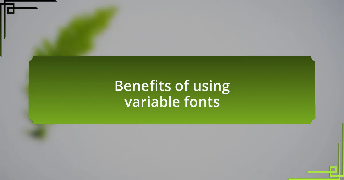 Another advantage I’ve found is versatility. Variable fonts allow for seamless adjustments in weight and style. I remember working on a branding project where a single typeface could adapt from light to bold, and even italicize, all while maintaining a cohesive look. This flexibility not only enhances the visual hierarchy but also ensures consistency across different platforms. It’s like having a Swiss Army knife for typography — how can you resist that?