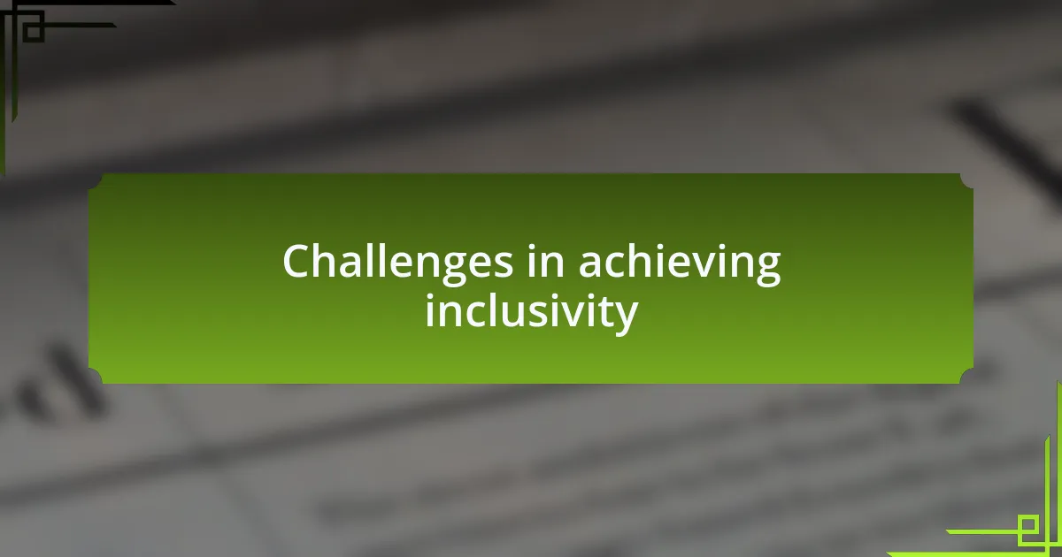 Achieving typographic inclusivity is fraught with challenges that often stem from a lack of awareness about diverse needs. I recall a time when I was working on a project that intended to be inclusive but overlooked key factors, such as dyslexia-friendly fonts and line spacing. It was a stark reminder that design isn’t just about aesthetics; it’s about ensuring everyone can engage with the content.