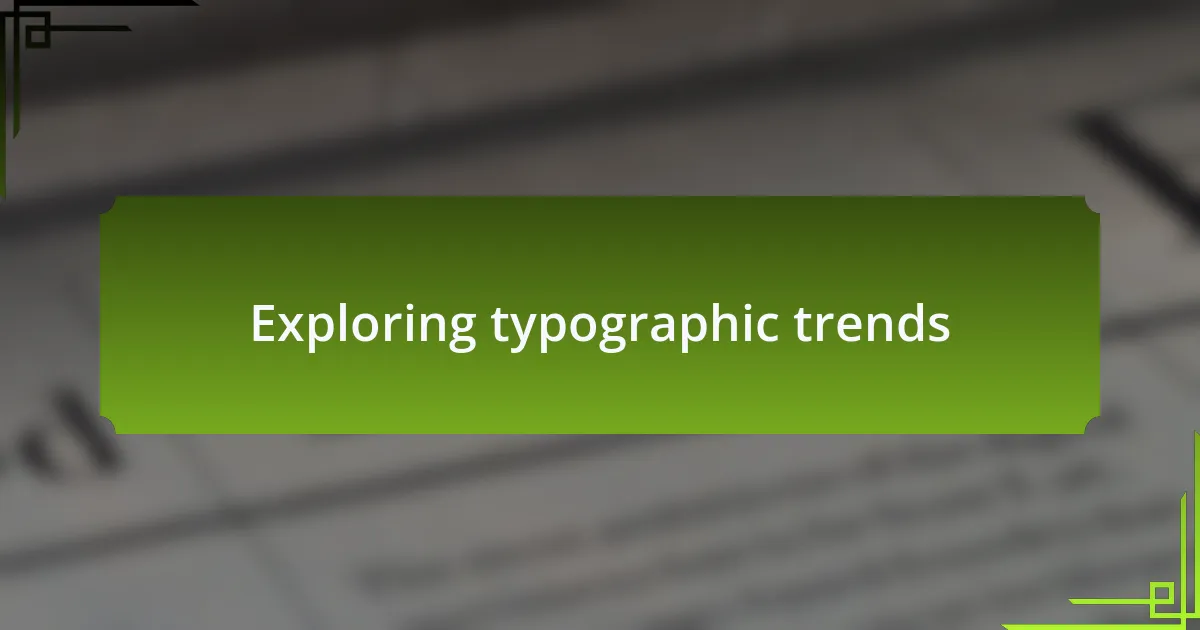 The latest typographic trends often spotlight minimalism, where less is truly more. I remember a project that leaned heavily on large, bold headlines paired with ample whitespace. This approach not only made the content pop but also created a sense of calm for the reader. It’s intriguing how a straightforward design can harbor depth and clarity, isn’t it?