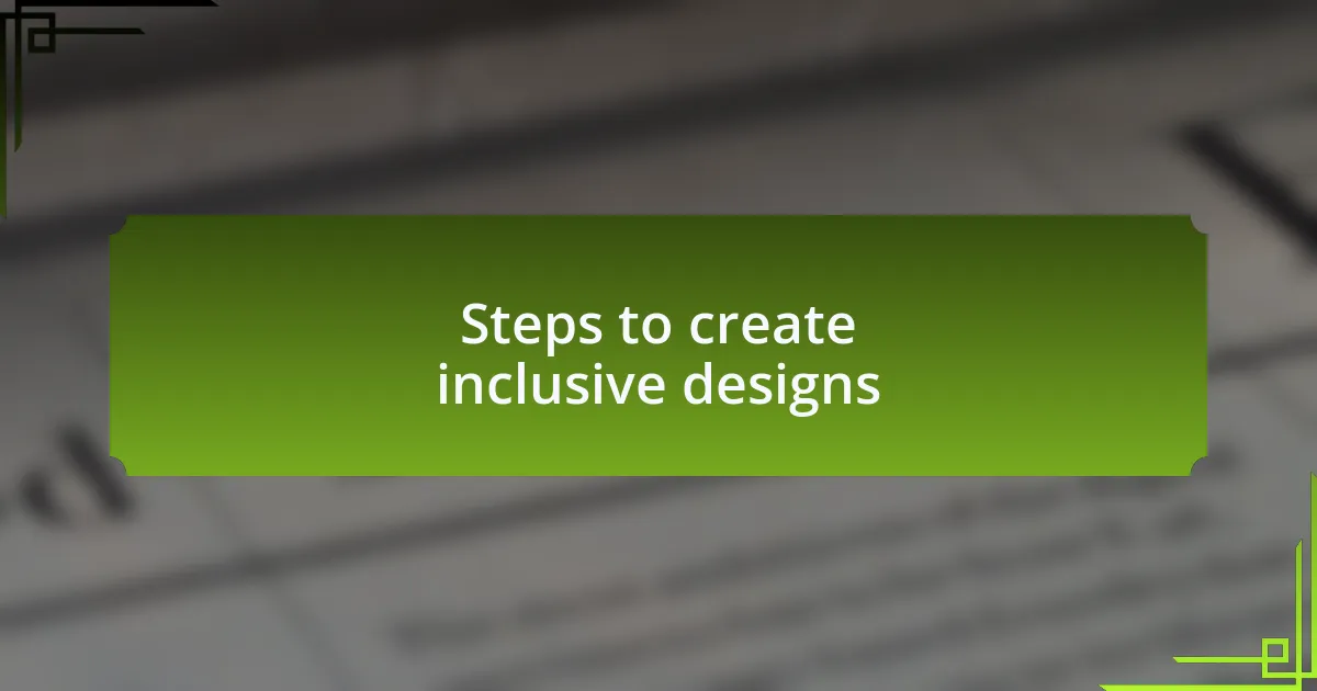 Embracing inclusive designs begins with understanding the diverse needs of your audience. I vividly recall a workshop where we discussed the importance of using adaptable color contrasts and font sizes. The realization that such elements could either empower or alienate users hit home for me. Have you ever considered how your choices in typography could affect someone’s ability to engage fully with your content?