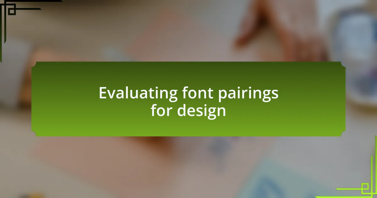 When evaluating font pairings for design, I often consider their emotional resonance. I recall a project where I paired a bold serif with a light sans-serif. The contrast created an inviting tone while maintaining readability. It was rewarding to see how this combination not only highlighted the content but also evoked the right feelings in the audience. Have you experimented with such contrasts in your own work?