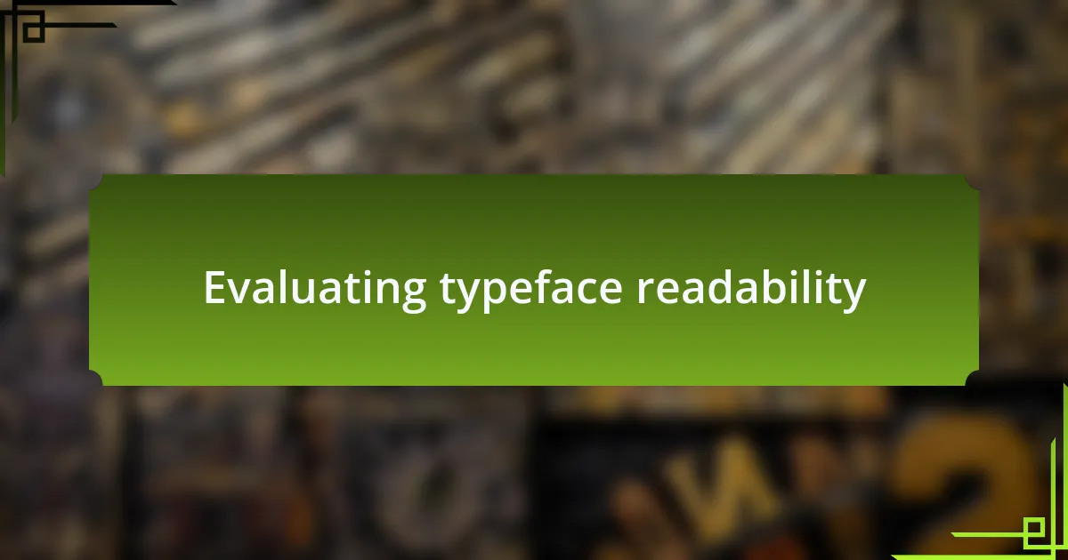 Evaluating typeface readability goes beyond just choosing a visually appealing font; it involves deeply considering how well that typeface facilitates effortless reading. In my experience, I often print samples of text in various typefaces to see how they perform in real-world conditions. When I took this approach, I was surprised by how much my initial perceptions shifted—what looked great on screen wasn’t always clear on paper. Have you ever found a font difficult to read in different lighting conditions?