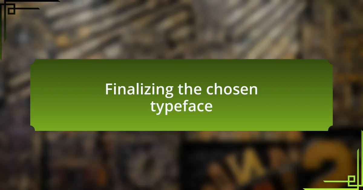 The final step is incorporating accessibility considerations, especially for digital platforms. I once finalized a typeface based solely on its aesthetic appeal, only to receive feedback highlighting its poor legibility for users with visual impairments. This taught me a valuable lesson: aesthetics must never compromise accessibility. How can we strike that balance without alienating any part of our audience? By prioritizing readability, we ensure that our designs are inclusive and effective for all users, reinforcing my commitment to creating engaging and accessible content.