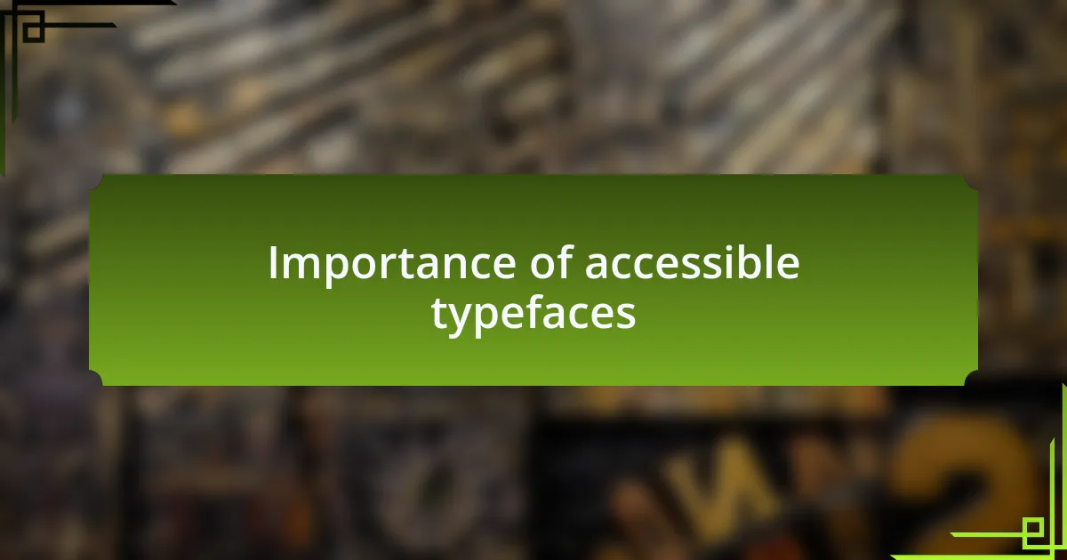When I think about the impact of accessible typefaces, I can’t help but ask: how do we truly make our designs welcoming? It’s a challenge, but the right typeface choice can enhance clarity and understanding. I remember feeling a sense of accomplishment after a user shared how much easier it was for them to read our site, which reinforced my belief in the importance of accessibility in design.