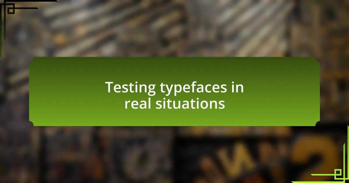 Testing typefaces in real situations is an absolute game-changer in my design process. I recall a project for a non-profit where I printed flyers to promote an upcoming event. I had a typeface that looked stunning on screen, but once in print, it was almost invisible against the background. That moment made me realize how crucial it is to test a typeface in the intended medium. Have you ever been surprised by how differently a typeface performs outside the digital realm?