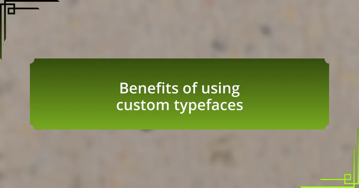 When I think about the benefits of using custom typefaces, the first thing that comes to mind is the sense of authenticity they bring to a project. I remember working with a local coffee shop that wanted to convey a cozy, artisanal vibe. We created a typeface inspired by handwritten signs, and it transformed their marketing materials into something genuinely inviting. The relief on the owner’s face when they saw how the typeface reflected their brand story was unforgettable.