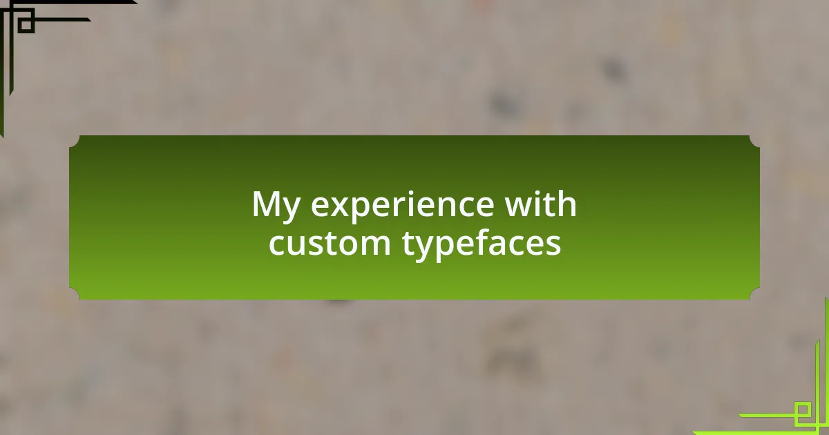 Working with custom typefaces has been a journey of discovery for me. I recall my first project where I aimed to create a typeface that embodied sophistication for a luxury brand. I felt proud initially, but as I progressed, I grappled with transforming my vision into a functional typeface. Have you ever felt the gap between concept and reality? That experience taught me that design isn’t merely about aesthetics; it’s also about usability and resonance with the target audience.