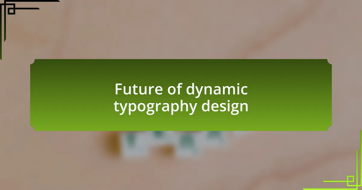 As I envision the future of dynamic typography design, I can’t help but think about the integration of artificial intelligence. Imagine a website where typography adapts not just to user behavior, but also to their emotions. I once collaborated with a team developing a concept for an app that could alter text animations based on the user’s mood detected through their interactions. It left me wondering: how engaging would a personalized typographic experience be?