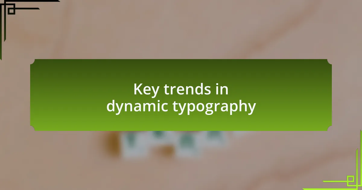 One of the key trends I’ve noticed in dynamic typography is the use of fluid layouts that adapt to various screen sizes and orientations. I remember redesigning a portfolio site where the text not only scaled with the screen but also rearranged to maintain readability and visual appeal. This flexibility not only enhances accessibility but also ensures an engaging experience across devices, wouldn’t you agree?