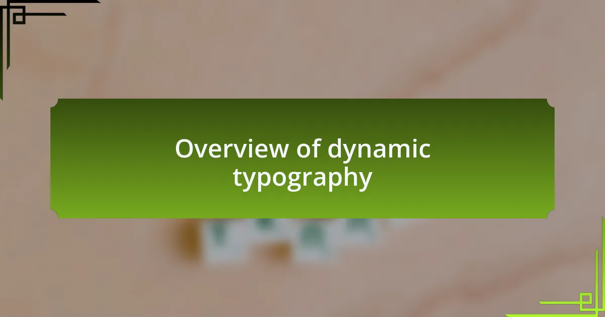 Dynamic typography involves the use of type that changes in response to user interaction or various conditions. I recall an interactive web project where text morphed in size and style based on user inputs, creating a playful yet immersive experience. This approach not only engages the audience but also allows for a more personalized connection to the content, don’t you agree?