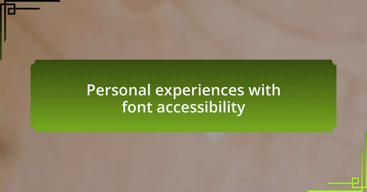 I vividly remember working on an educational website where font accessibility became a central concern. I selected a sans-serif font because of its clean lines, believing it would enhance readability. However, I soon learned that the font’s weight was too light for some users, particularly those with visual challenges. Their feedback highlighted how essential it is to choose fonts that cater to diverse needs—this experience really opened my eyes to the importance of accessibility in design.