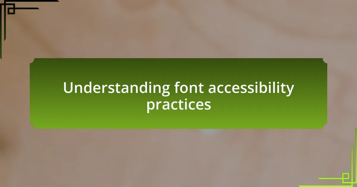 One critical practice is selecting fonts that are legible and widely recognized. Sans-serif fonts, like Arial or Helvetica, tend to be clearer on screens compared to complex serif fonts. I remember a project where I chose a font that looked modern and stylish, but users frequently misread headlines. It made me realize that sometimes simplicity truly is the best choice for ensuring everyone can access content.