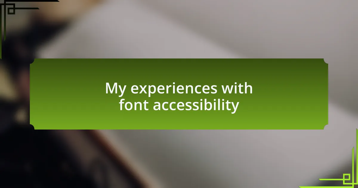 When I think about font accessibility, the first thing that comes to mind is the importance of legibility. I once visited a website where the text was so stylishly condensed that I found myself squinting, straining to decipher the content. It made me realize that while a unique font can add flair, it shouldn’t come at the cost of clarity, especially for those with visual impairments.