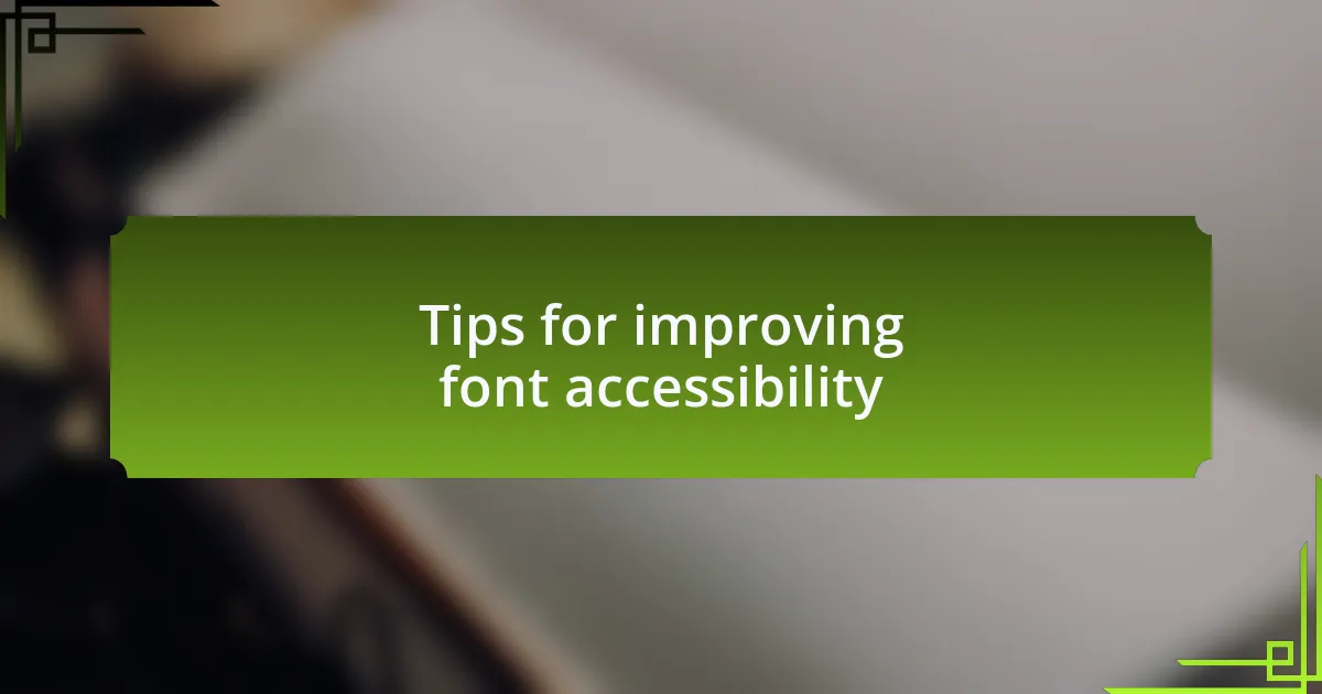One effective way to enhance font accessibility is by prioritizing color contrast. I recall a time when I visited a site with light gray text on a white background. It seemed like a design choice aimed at elegance, but it left me straining to read even the simplest sentences. When selecting font colors, I think it’s essential to ensure high contrast between text and background. It truly transforms readability and invites all users to engage comfortably with the content.