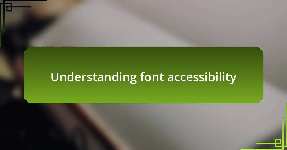 Accessibility in fonts goes beyond just choosing a readable typeface; it’s about ensuring that the font size, spacing, and color contrast work together effectively. I remember tweaking the line heights on a project and how it completely transformed the experience for users. Has that ever happened to you? It’s incredibly satisfying when a simple adjustment can make your content resonate with a broader audience.
