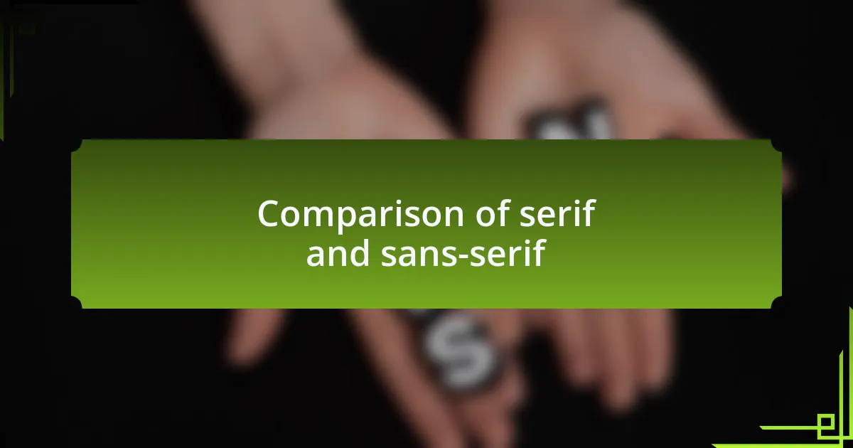 Sometimes, my personal bias towards sans-serif in digital projects stems from its crispness on screens. I still remember the first time I viewed a beautifully designed website that employed a bold sans-serif typeface. It felt modern and seamless, like the design anticipated my gaze. Have you experienced that delightful alignment between typography and usability that leaves a lasting impression?