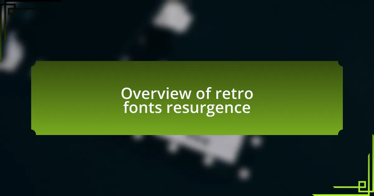 The resurgence of retro fonts has sparked a wave of nostalgia that resonates deeply with many designers and audiences alike. I remember flipping through old magazines filled with vibrant, playful typefaces that seemed to tell stories all on their own. It’s intriguing how these vintage aesthetics evoke a sense of comfort and familiarity in an increasingly digital world.