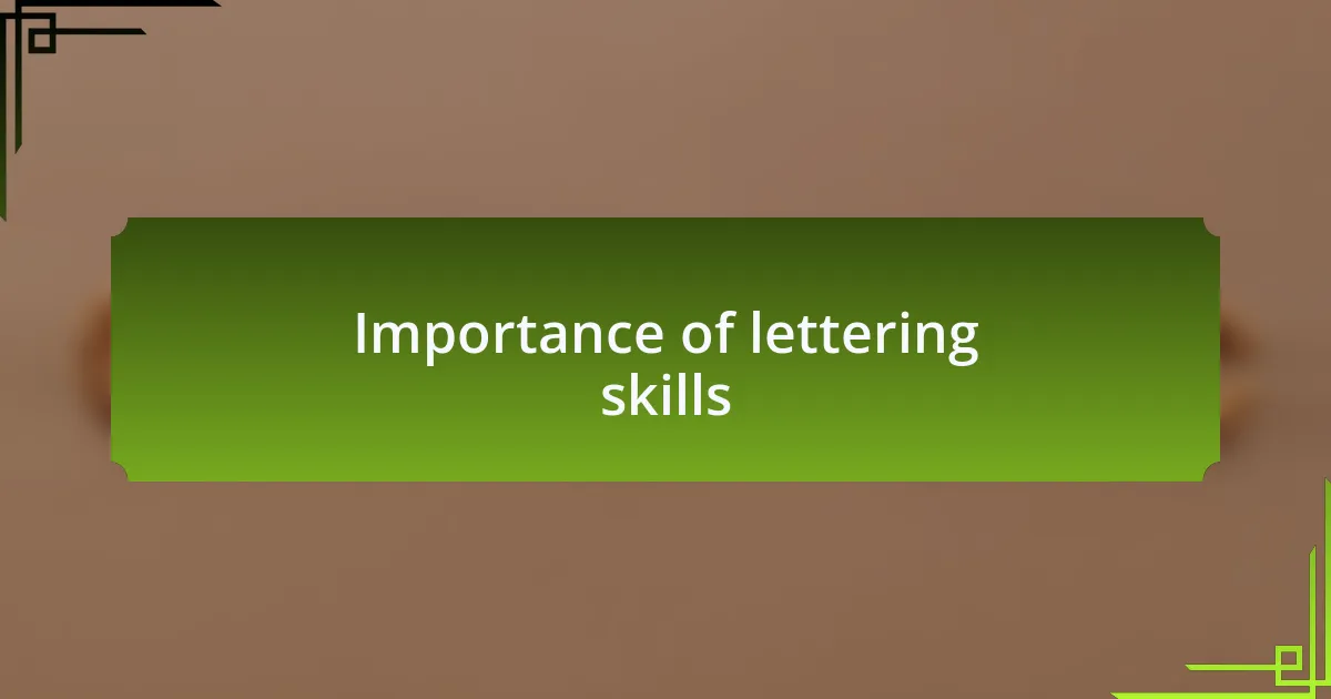 Lettering skills play a pivotal role in the world of design. It’s fascinating to observe how understanding the nuances of letters can breath life into a project. I recall working on a sign for a community garden; choosing the right lettering style not only made it easier to read from a distance, but it also infused the atmosphere with warmth and friendliness, drawing people in.