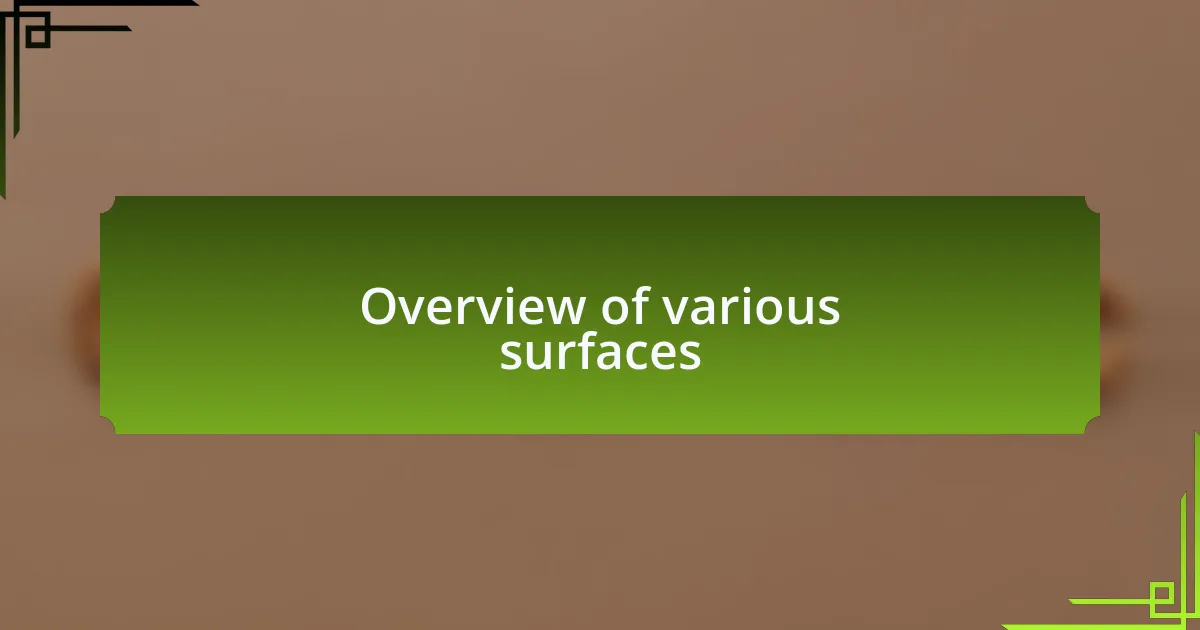 When it comes to lettering, each surface presents its own distinct characteristics that can greatly influence the final result. I vividly remember working on a slate board; the smooth, cool surface allowed for exceptionally clean lines, yet I had to be cautious about the ink drying too quickly. What a challenge that was! This experience taught me the necessity of adjusting my technique according to the material, which ultimately led to an elegant finish.